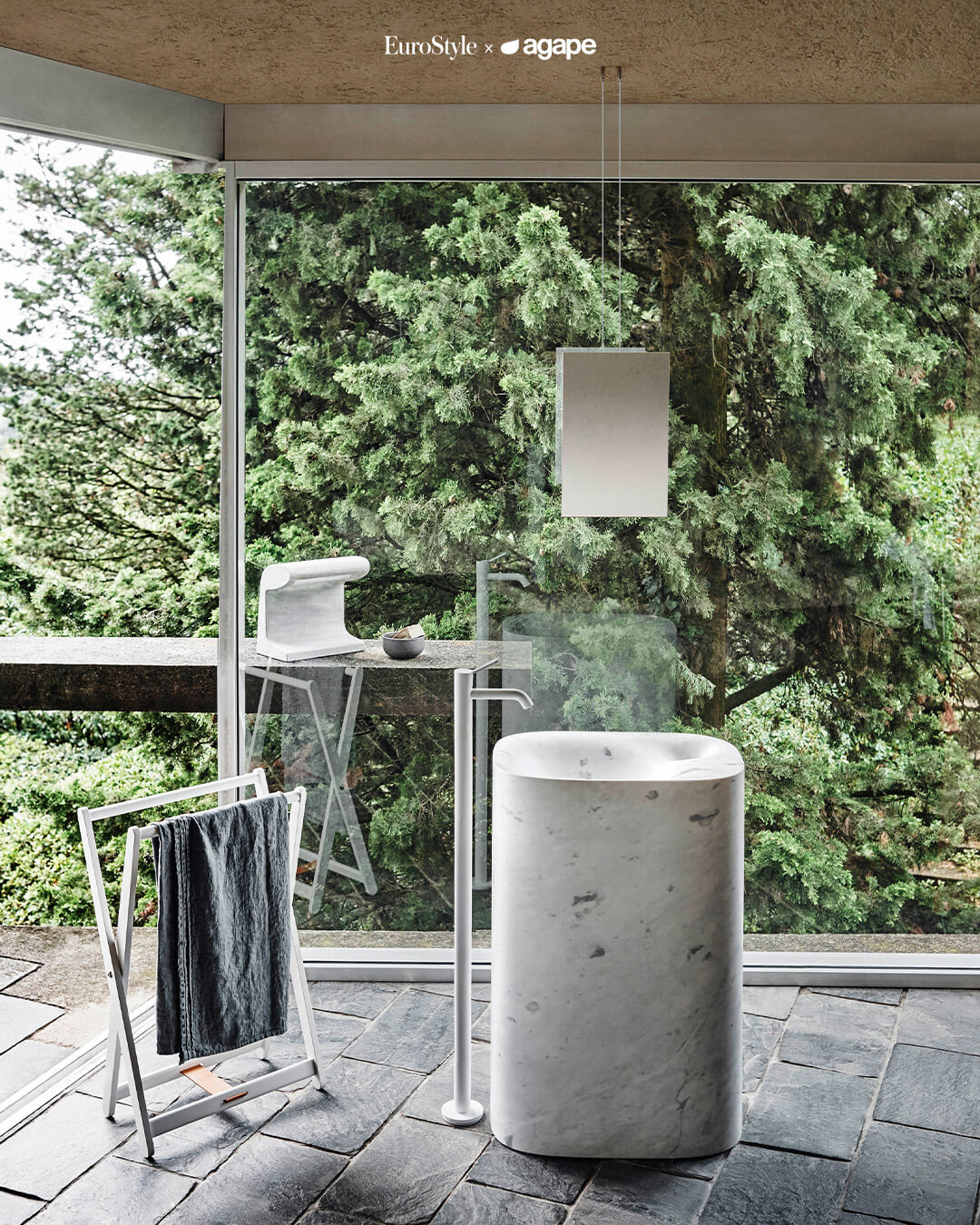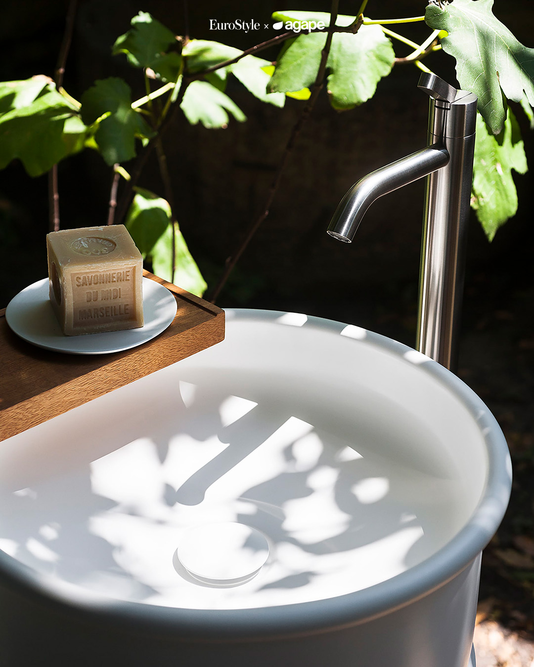 Chậu rửa đứng Nivis từ thương hiệu Agape bathroom — một kiệt tác điêu khắc tôn vinh bản thể của vật liệu.